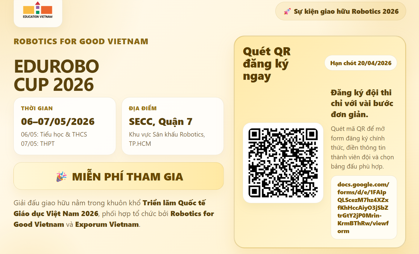 Tại Việt Nam, SEPA với vai trò Đơn vị Tổ chức Quốc gia sẽ tổ chức vòng thi Quốc gia và lựa chọn đội tuyển xuất sắc nhất đại diện Việt Nam tham dự Robotics for Good Youth Challenge Grand Finale tại Hội nghị thượng đỉnh AI for Good Global Summit 2026 tại Geneva, Thụy Sĩ.